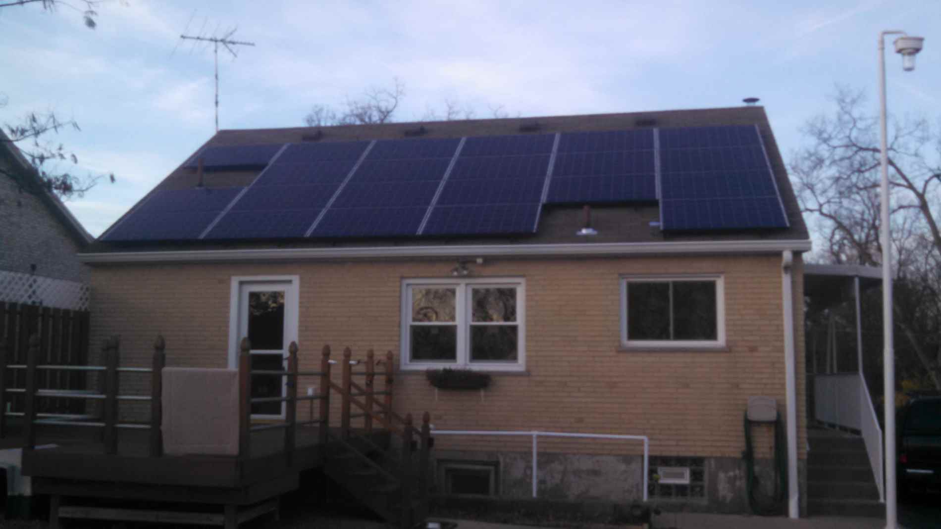 Mr. Meyer's 5.61 kW solar energy system is powered by 22 Canadian Solar CSP-255 watt poly-crystalline panels. He also has an SMA Sunnyboy 5000 TL string inverter changing all that electricity from DC to AC. His panel efficiency is 16% while his inverter efficiency is 97%. His solar energy system generates just north of 7,300 kWh of electricity per year. This is enough electricity to offset the burning of more than three and a half tons of coal per year. At $0.12 a kWh that means he is saving around $900 a year off his electricity bills.