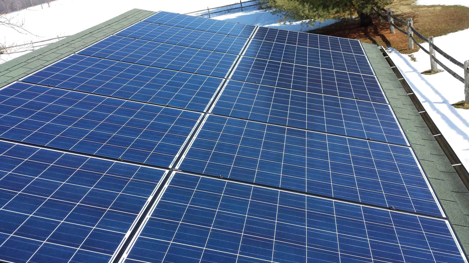 Mr. Horrell built a 3.6 kW array on the south-facing roof of his barn using 14 Canadian Solar 255 watt panels. He opted for a string inverter from SMA, the Sunnyboy 3000 TL model. The array is set to generate nearly 5,000 kWh per year which would be an offset of nearly two-and-a-half tons worth of coal.