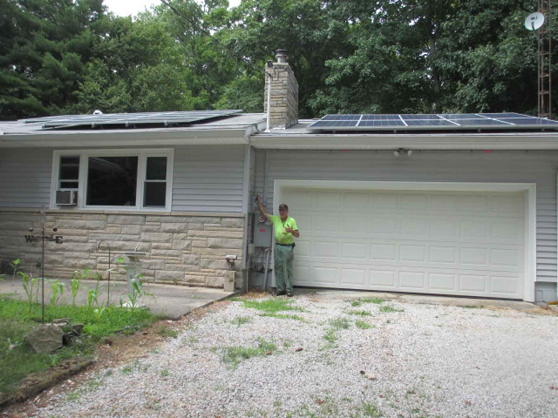 Mr. Keller is an avid environmentalist with a cheerful demeanor and a playful spirit. "I got the panels for financial reasons. I'm a tree hugger. Any time I find a dead tree in my yard, I cut it down and I burn it in my catalytic wood burning furnace. I burn seven cords of wood per year. My furnace is 70% efficient and cost me $3,000. It probably saved me $10,000 in propane costs. We recycle everything. I work at a recycling center part-time.